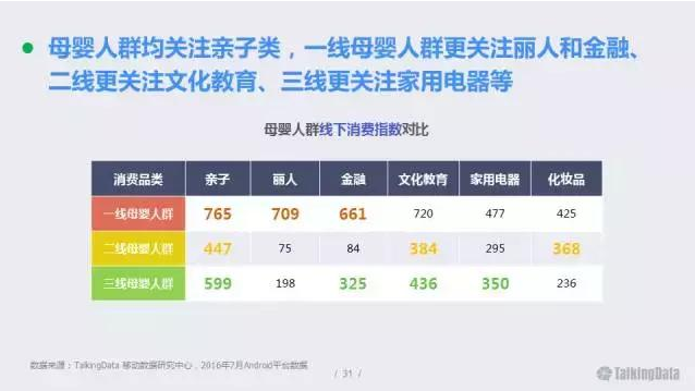 母嬰人群均關(guān)注親子類,一線母嬰人群更關(guān)注麗人和金融、二線更關(guān)注文化教育、三線更關(guān)注家用電器等。