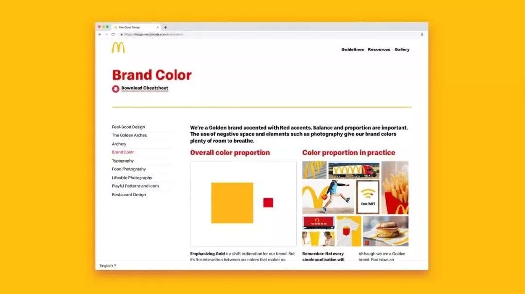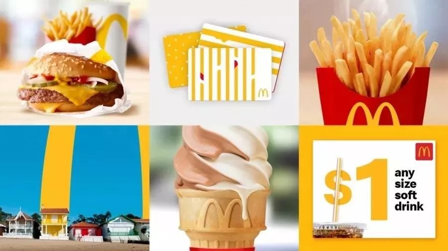 麥當勞統(tǒng)一視覺形象設計的第一步就是把備受大眾喜愛的元素挑選出來,加大應用。