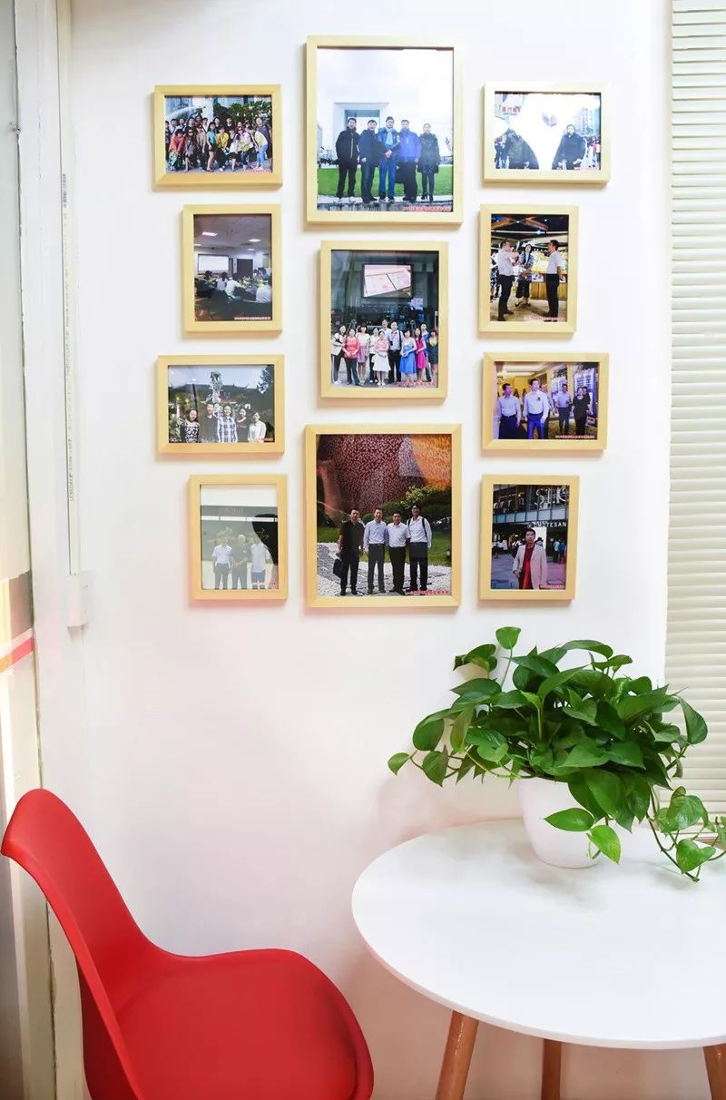 而且我們定制了更多的柜體,解決了原來儲物空間不足的難題,還為每一位員工都配置了一個私人帶鎖衣柜,從而解放出更多通道和共享空間。各式定制柜和墻面空間也成為了員工擺放獎牌、證書、照片、工藝品、綠植的特色位置。