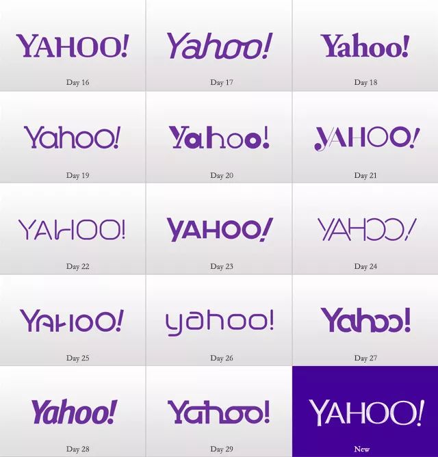 2013年雅虎就靠LOGO刷存在感了,當時在一個月內連續更換了30個標志(見上圖)。這都2019了現在雅虎還是一蹶不振。接下來我們看看全新的雅虎LOGO,由著名品牌設計公司Pentagram,也叫五角設計公司操刀設計。