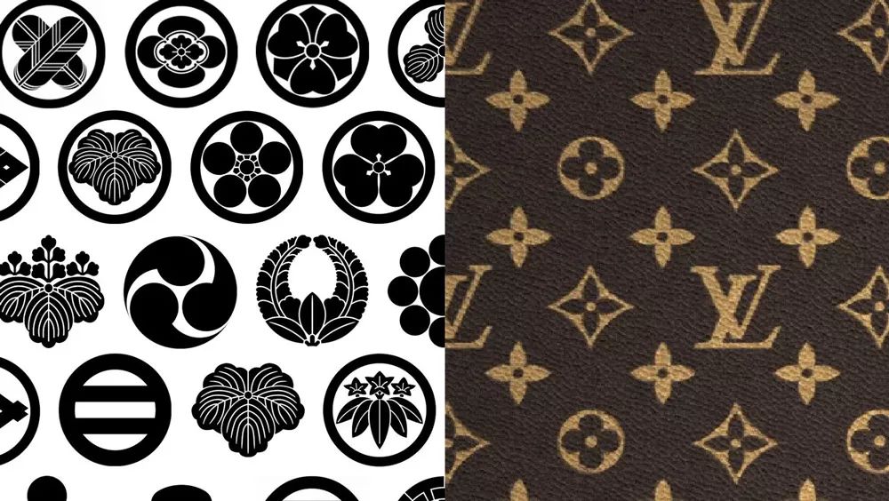 深受日本美學風潮影響的佐治·威登隨后在設計中融入了更多和日本有個的元素,比如LV沿用至今的Monogram圖案不止和日本文字及櫻花有關,那些圓形和星形紋飾亦來自日本家徽的設計,Mon在日語中就有家徽的意思。