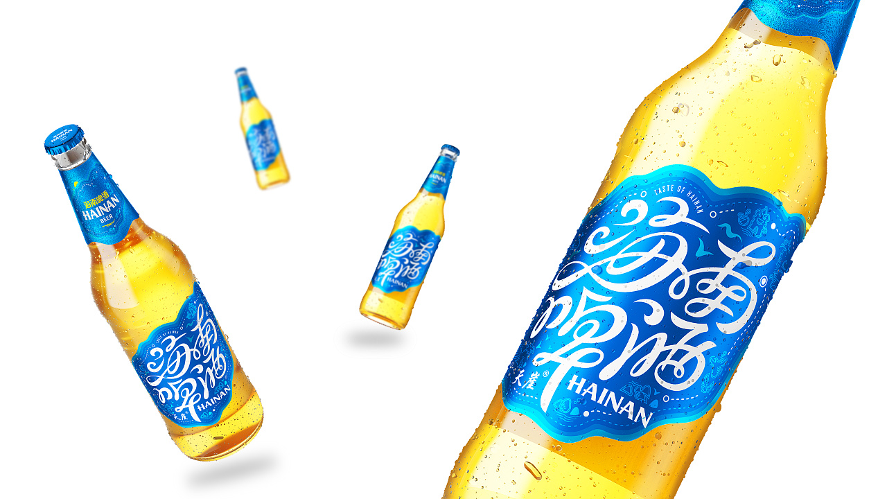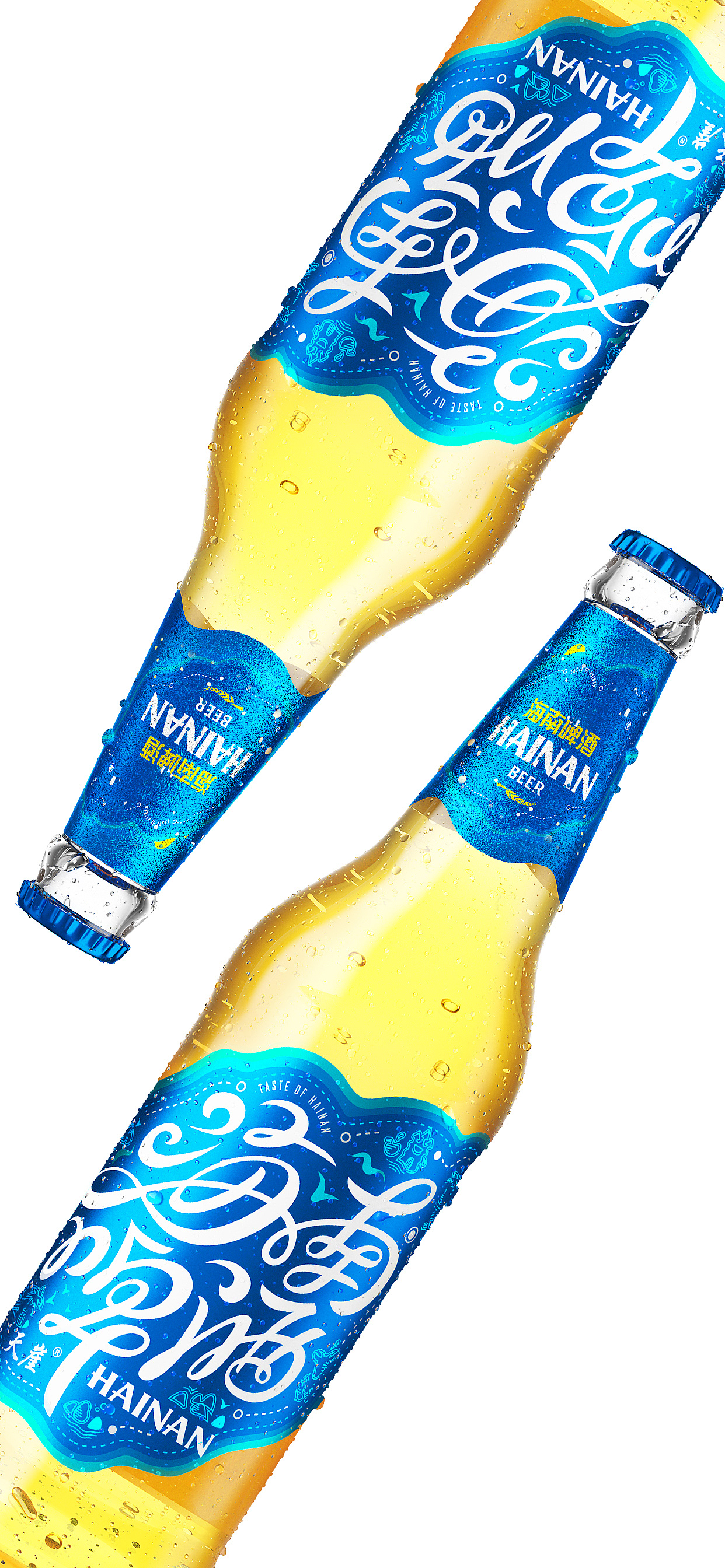 海南啤酒的包裝設(shè)計創(chuàng)意靈感來自于“浪”,結(jié)合海南本土元素再設(shè)計,提取海浪、海鷗的形狀,通過文字變形處理,將元素以圖像化表現(xiàn),賦予海南啤酒的新鮮活力。圓潤、律動的圖形文字,體現(xiàn)海南的舒適自由度,將悠然愜意的感覺融入設(shè)計之中。主圖形放大化,突破常規(guī)設(shè)計局限,形成強烈的視覺沖擊力。