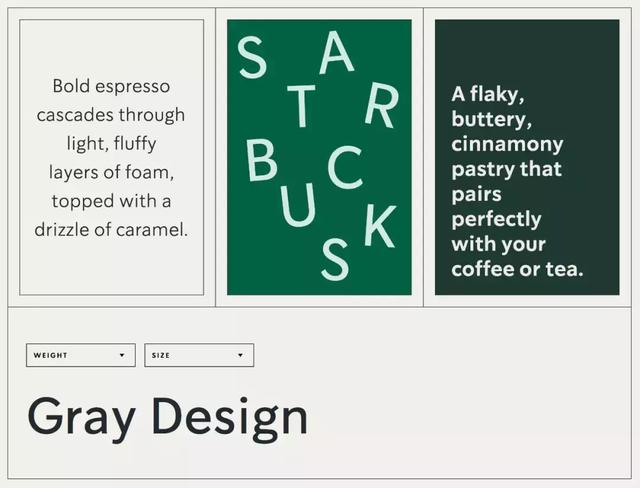 現在很多品牌都是量身定制字體,星巴克使用了三種不同字體滿足于標題、正文等使用范圍。可以根據不同情況調整字號大小。