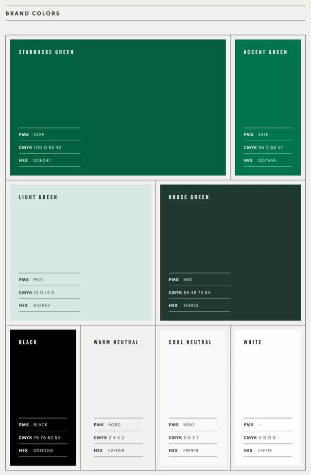 星巴克除了主色和輔助色,還根據不同季節也設定了一些顏色,讓人們能感受到品牌也在隨著季節的變化而變化,真是考慮的太貼心了。
