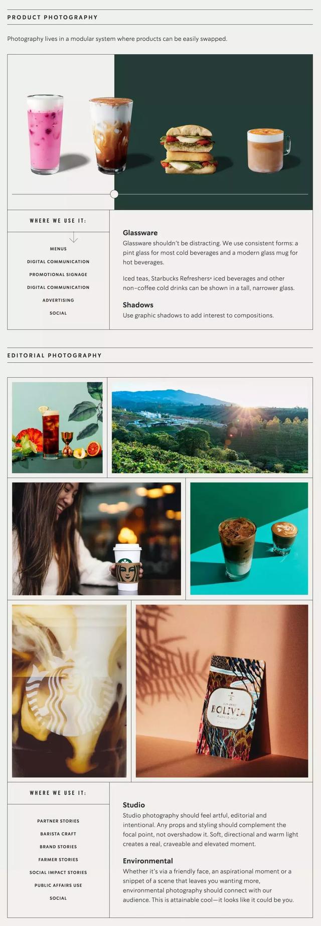 很多品牌的攝影風格都不重視,單獨看都好看,放在一起完全不是一家人。而星巴克在攝影方面也做了規范,讓整個拍攝符合品牌調性,傳遞品牌價值理念。