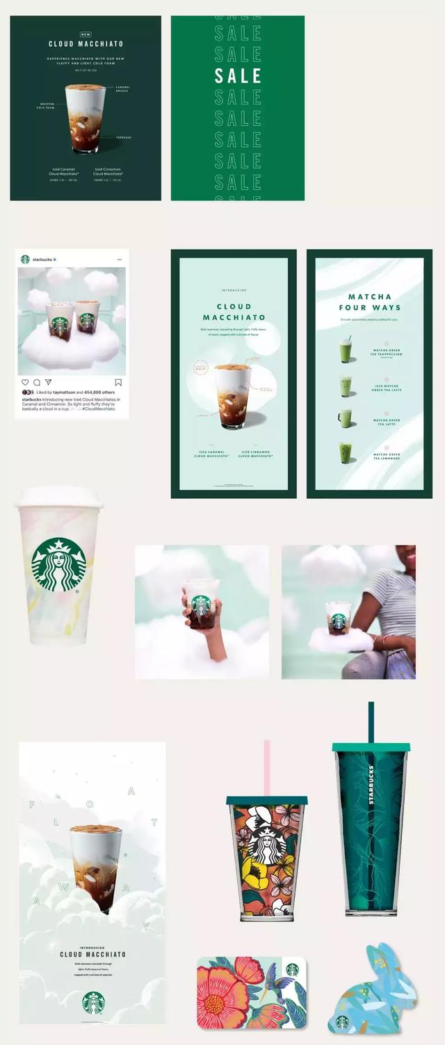 感受一下星巴克綠色美人魚出現在不同設計上面的效果。