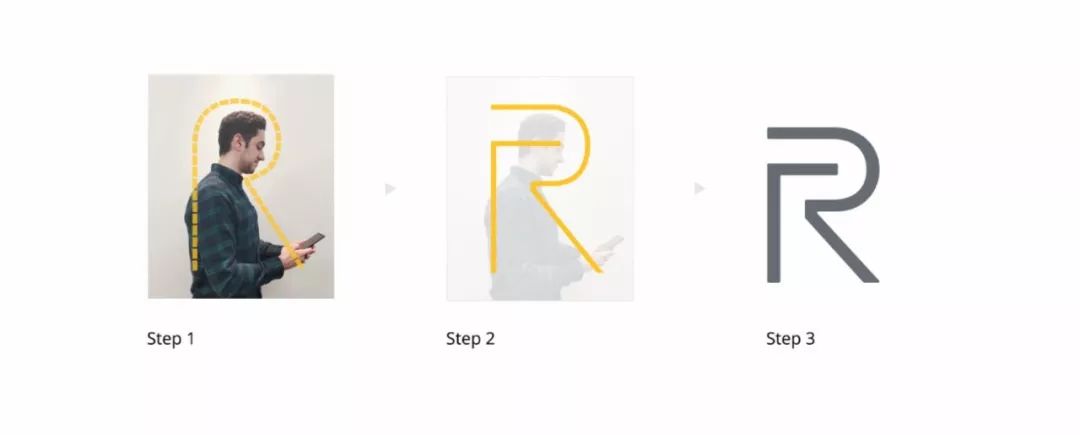 圖形的靈感來源于設計師對人類日常使用手機行為動作的觀察并將人體剪影與Realme首字母“R”有機結合,傳遞出以人為本的理念。