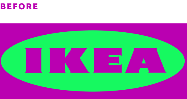 新LOGO整體的長方形寬度增加,橢圓形隨之縱向拉高,因此重心上移,視覺上看“更方了”同時中央的字體經過拉伸,占比更大,讓品牌名“IKEA”更突出。