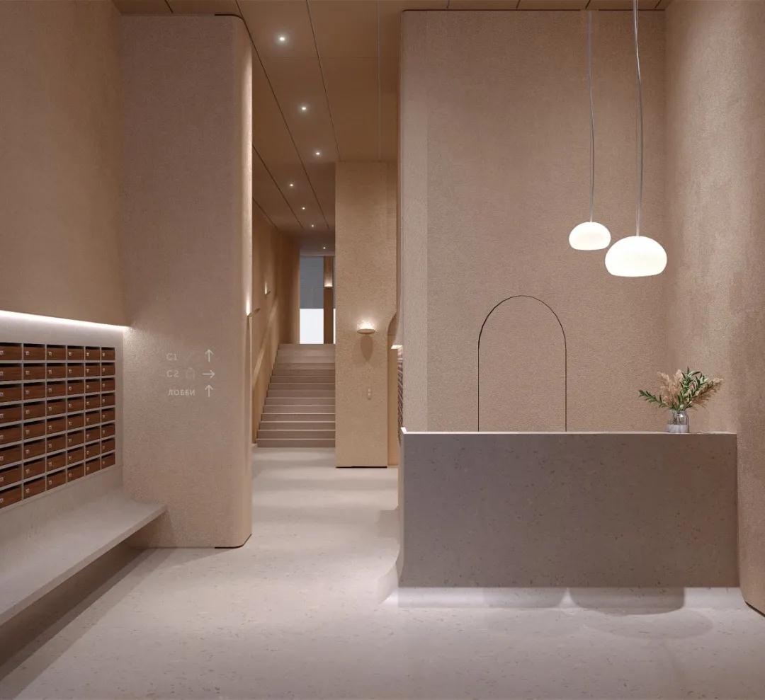 位于烏克蘭基輔的一個商業項目Kovalska Crystal Park,由當地的室內設計工作室Artem Vakhrin設計。Kovalska Crystal Park大堂是一個600多平方米的多功能空間。M區,包括娛樂區、會議場所、儲藏室、禮賓區等等。大堂設計與建筑整體建筑理念和諧互補。該項目使用了自然紋理的暖色調。其突出的內部元素,如柱子、拱門,在視覺上擴展了空間,強調了舒適的氛圍。